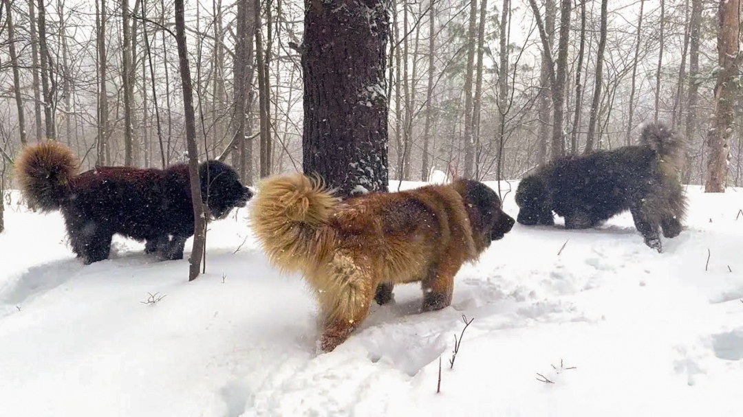 Caucasian Shepherd guardian dogs patrol farm boundaries in wooded terrain. The breed's territorial intelligence and strategic positioning prove effective against coordinated predators like wolves. Photo: Brotherbear Acres