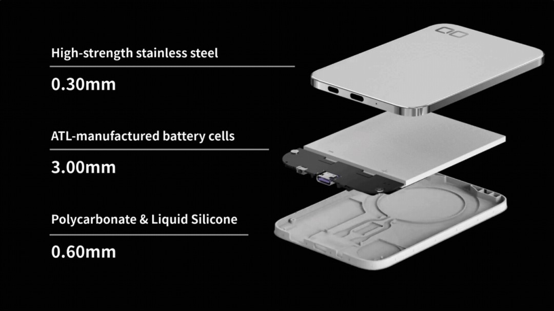 From the 0.3mm stainless-steel frame to the 3.0mm ATL cell pack and the 0.6mm polycarbonate with liquid silicone coating, every component has been optimized for minimal thickness. Every fraction of a millimeter was carefully considered — not a single 0.1mm wasted. This engineering approach enabled the product’s remarkable 4.98mm profile, proving that safety and durability need not be compromised for slimness.