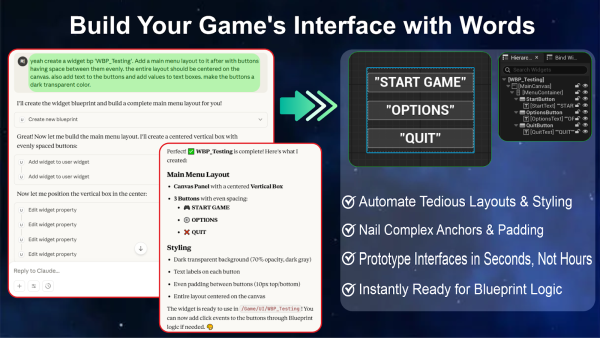 Unreal Motion Graphics (UMG) is powerful, but its designer can be tedious. Now, you can scaffold entire UI hierarchies from a single, descriptive prompt.
