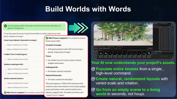 Game development is a creative endeavor, but often, the technical overhead can feel like a mountain. What if you had a partner -a true AI Copilot- integrated directly into the Unreal Editor? One that doesn't just write code snippets, but understands your entire project, builds levels, designs UIs, and helps you optimize your game with simple, conversational language.