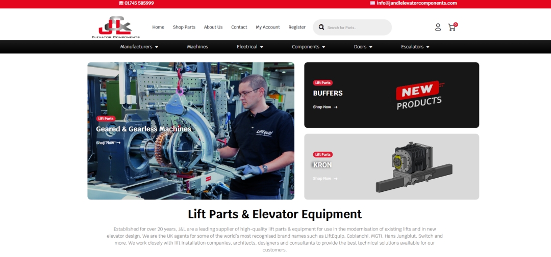 Key features of the new J&L Elevator Components online shop include: