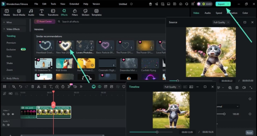 Use both monitors together to preview and edit. After completing adjustments, export the final file through Filmora’s interface.