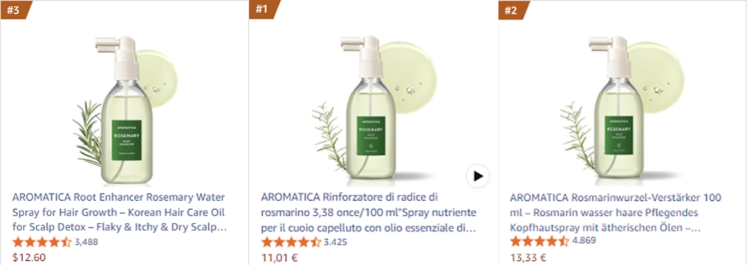 The brand’s hero product, the Rosemary Root Enhancer, ranked No.3 in the U.S., No.2 in Germany, and No.1 in Italy within Amazon’s scalp treatment category. In Italy, the product reached No.1 Bestseller status in the scalp treatment category, reflecting strong local consumer demand.