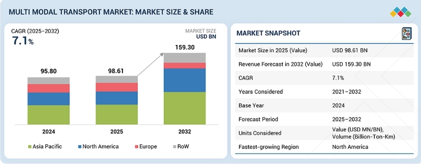 The multimodal transport market is projected to grow from USD 98.61 billion in 2025 to USD 159.30 billion in 2032 at a CAGR of 7.1%.