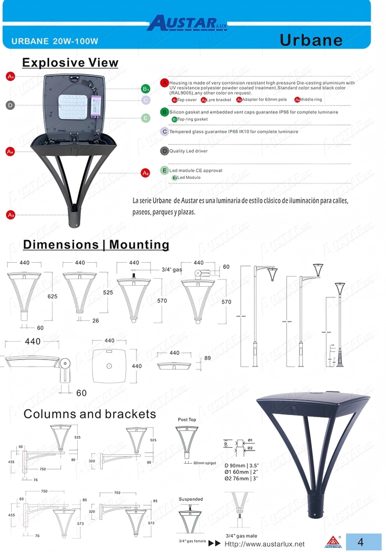 URBANE 2061 Luminiare design by China Austar lighting. Beneath its classic and timeless design, URBANE incorporates cutting-edge LED and connection technologies. URBANE is available innumerous configurations to light urban roads, streets, squares, parks and car parks. With its various control options, this stylish luminaire is also connected-ready for your smart city projects. URBANE is the ideal tool for providing efficientlighting while creating attractive public spaces imbuedwith a sense of belonging, well-being and safety.