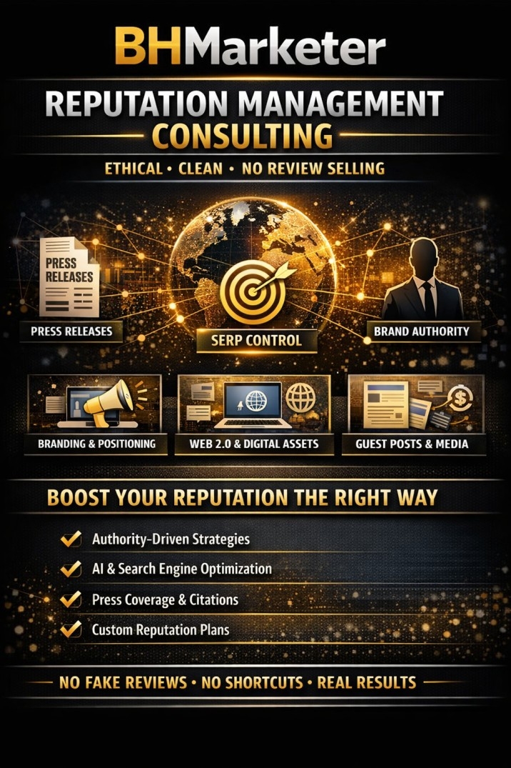 BHMarketer is a digital reputation and brand authority consultancy dedicated to helping organizations build credibility and clarity across search engines, media platforms, and AI discovery systems. The company’s services combine strategic insight with structured execution to support long-term reputation strength.