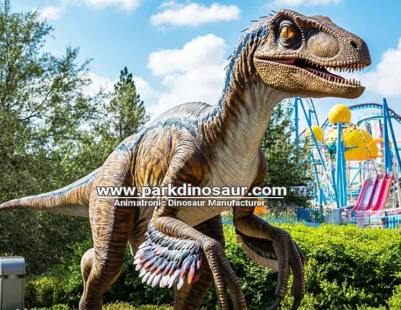 We understand the power of visual branding. The "Blue" stripe running down the flank of the raptor is an iconic image that instantly connects with visitors of all ages. Parkdinosaur’s artists use high-grade, UV-resistant pigments to achieve this coloration.