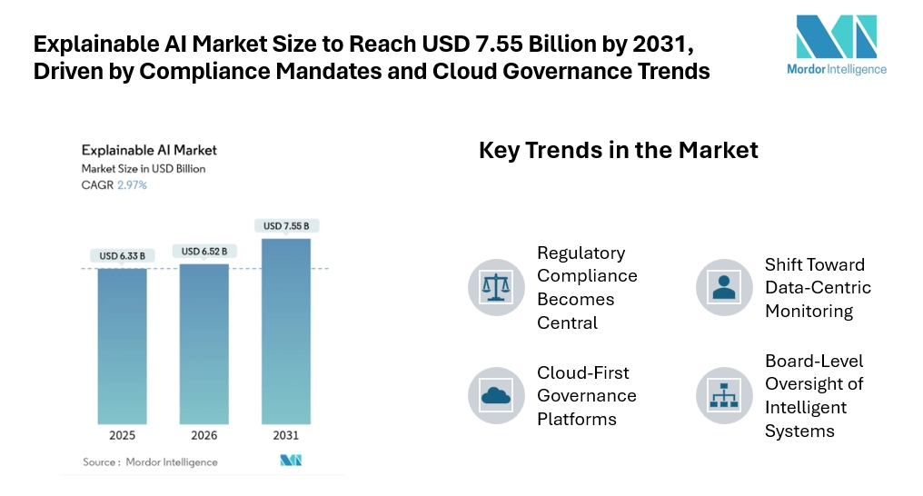According to Mordor Intelligence, the explainable AI market is projected to reach USD 7.55 billion by 2031, growing from USD 6.52 billion in 2026 at a CAGR of 2.97% during the forecast period. While the explainable AI industry continues to expand across sectors, regulatory expectations, cloud-based deployment models, and board-level oversight are shaping how organizations invest in intelligent systems. The explainable AI market size reflects steady adoption across regulated environments where transparency, documentation, and system accountability are no longer optional. Organizations are embedding explainability frameworks into their AI-driven learning systems to ensure traceability and compliance.