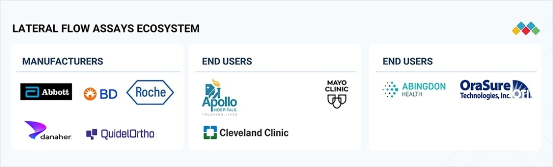 Key companies operating in the global lateral flow assays market include Abbott Laboratories (US), F. Hoffmann-La Roche Ltd. (Switzerland), Danaher Corporation (US), Becton, Dickinson and Company (US), QuidelOrtho Corporation (US), Siemens AG (Germany), bioMérieux SA (France), Thermo Fisher Scientific, Inc. (US), Revvity, Inc. (US), Hologic Inc. (US), QIAGEN N.V. (Netherlands), Merck KGaA (Germany), Surmodics, Inc. (US), and OraSure Technologies Inc. (US). These companies are focusing on product innovation, strategic partnerships, and geographic expansion to strengthen their positions in the rapidly evolving diagnostic testing landscape.